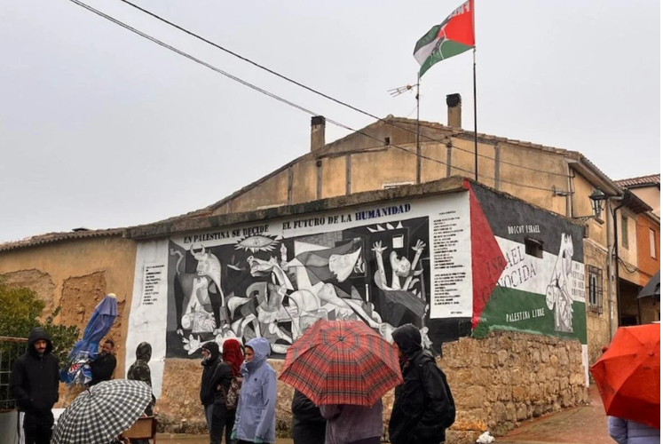 El domingo 19 de octubre el grupo Burgos con Palestina inauguró un doble mural en la fachada de una propiedad privada del municipio burgalés de Castrillo Mota de Judíos, en un entorno vacío de vecinos.