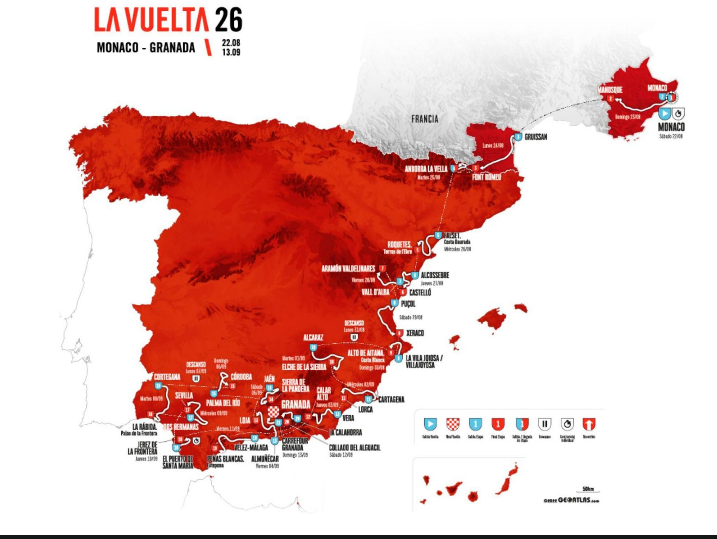 Resulta bastante revelador mirar con calma el trazado de 2026. La Vuelta saldrá de Mónaco, entrará por los Pirineos y luego descenderá de manera casi quirúrgica por el Levante hasta Andalucía. Todo muy limpio, muy medido, muy pensado para que nada ni nadie estropee la carrera. Un recorrido que parece diseñado para esquivar territorios donde la fluidez del pelotón pueda verse comprometida por el activismo de pancarta, megáfono y corte de carretera.