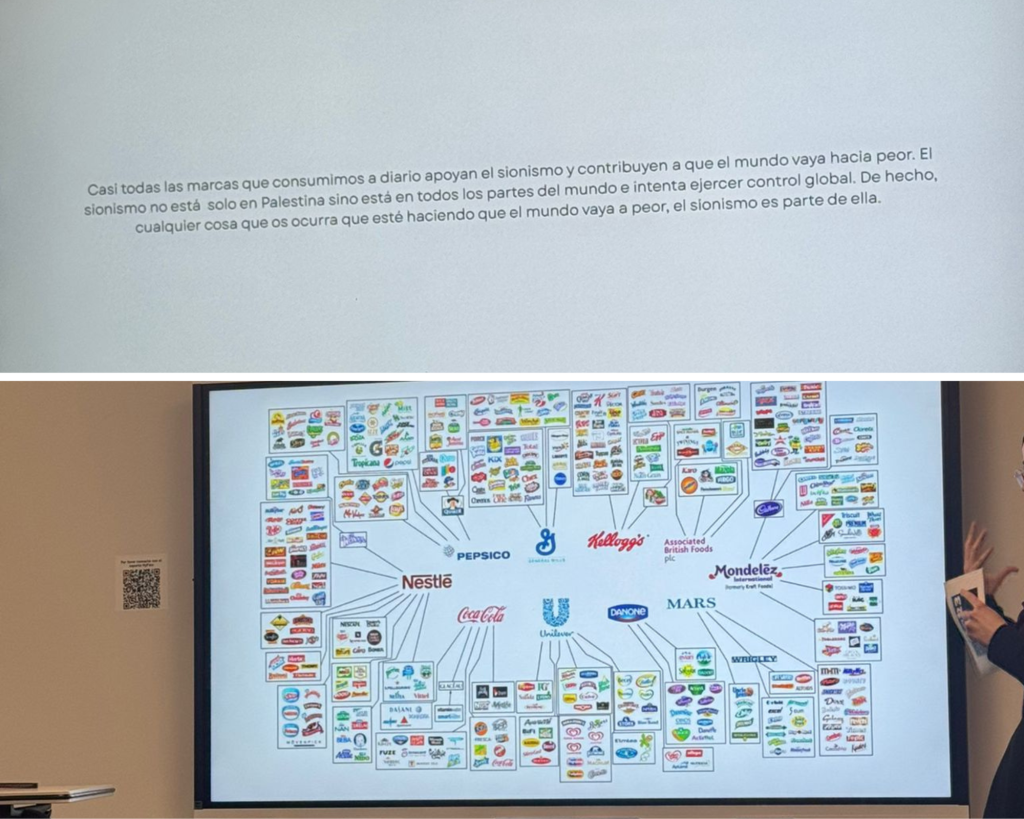 En una exposición presentada en la Universidad Complutense de Madrid, una alumna afirmó que “casi todas las marcas que consumimos apoyan el sionismo y contribuyen a que el mundo vaya a peor”, y llegó a decir que “cualquier cosa negativa que ocurra en el mundo” es culpa del sionismo. El discurso, acompañado de un cartel de boicot, repite viejos clichés conspirativos que señalan a un colectivo como fuerza oculta y omnipresente. No es análisis crítico: es la actualización de un prejuicio que convierte una ideología en chivo expiatorio universal.